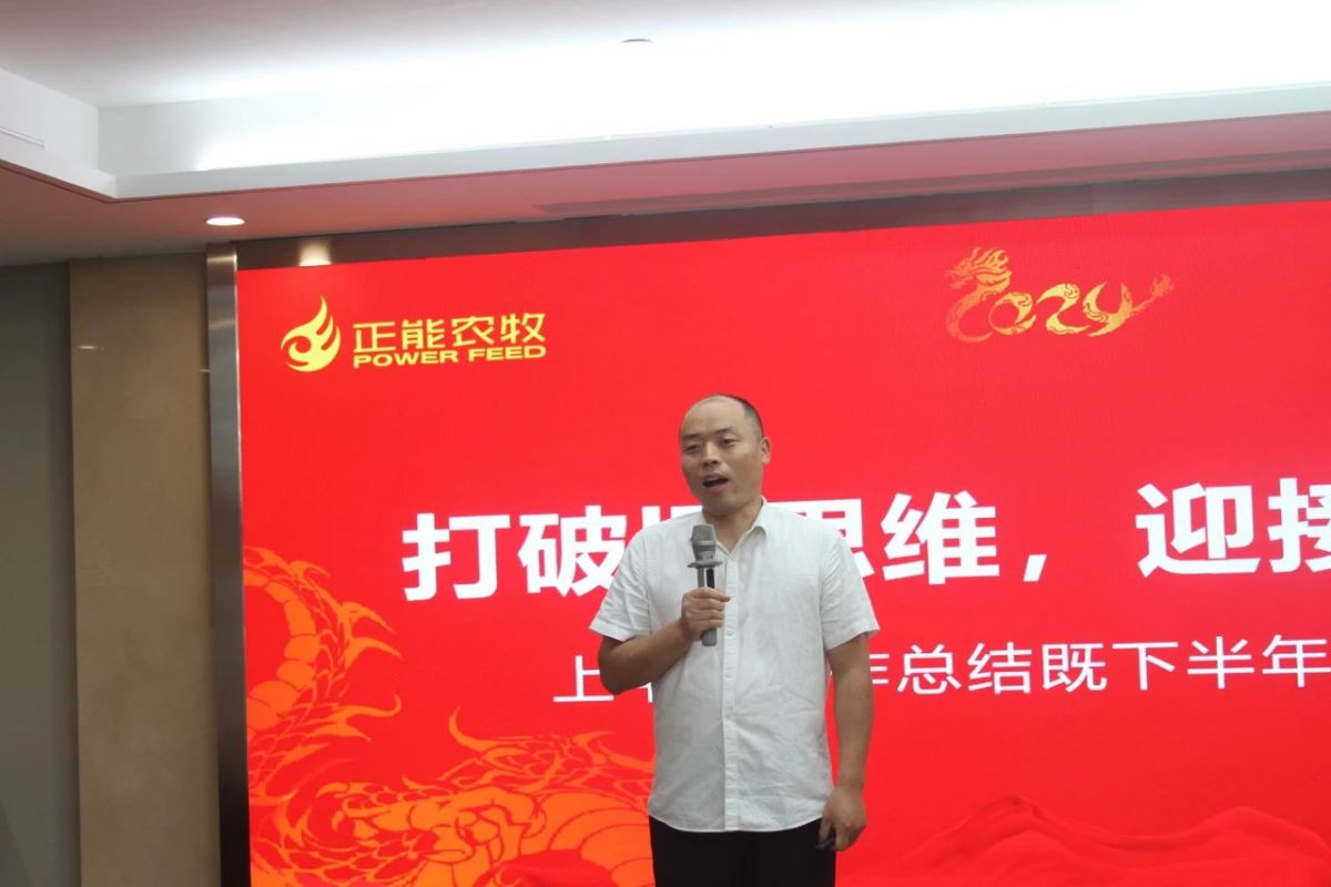 集团饲料产业副总裁,一战区总经理马乐老师,分享《打破旧思维,迎接新挑战》主题报告,马老师首先肯定本次会议意义重大;接着他从爬山活动,结合半年工作和行业现状,希望大家认清形势、加快业务转型、提升技术服务能力、实践落地,坚定信心、明确目标、创新方法、灵活思维;最后,他从业务到集团发展的大方向,号召大家一定要“打破旧思维、迎接新挑战”,打破认知、不破不立、顺应变化、快速行动,“鸡蛋从内打破才是重生”。马老师激情满满、能量满满,给大家指明了方向,得到大家热烈的掌声。